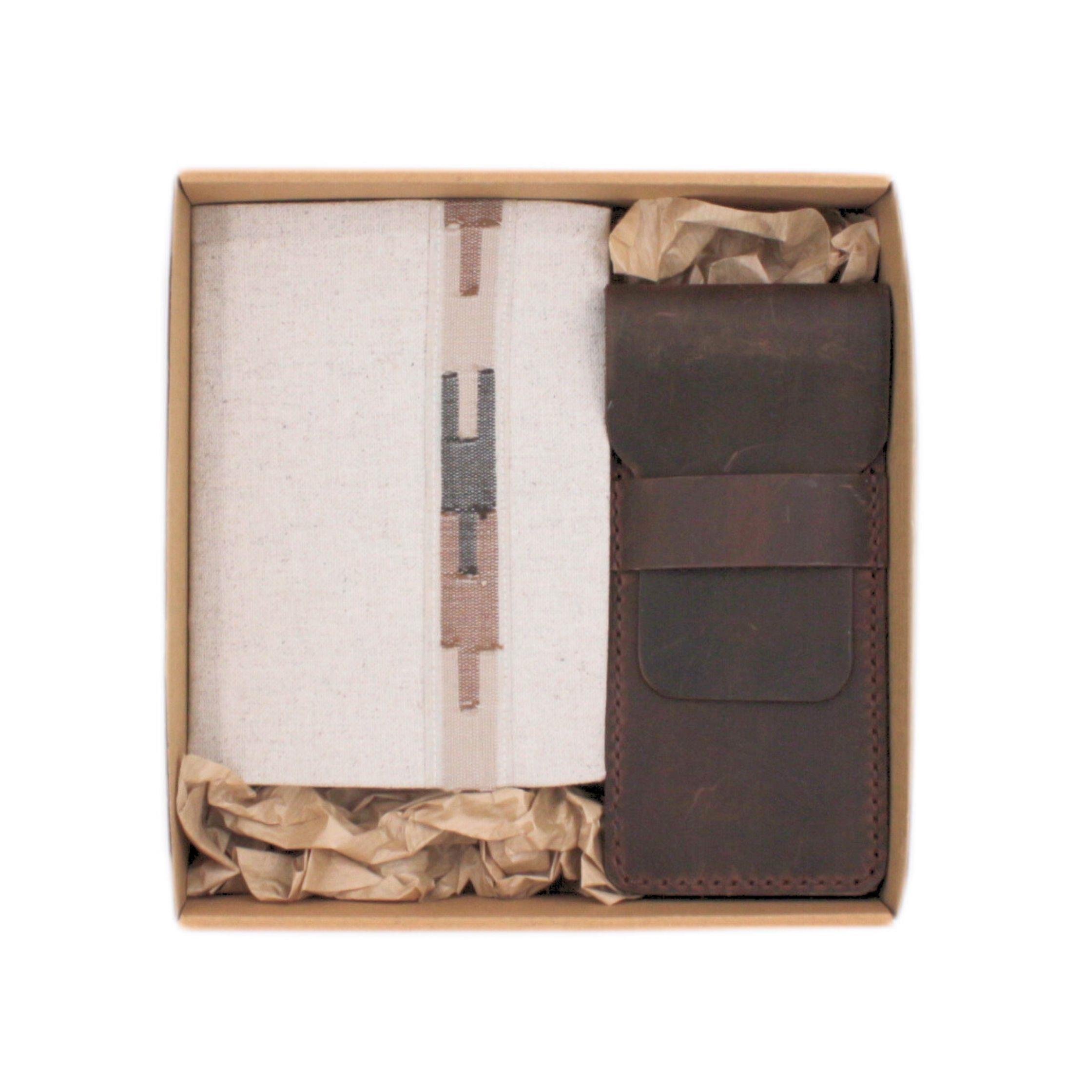 Set; bir adet defter ve deri kalemlikten oluşmaktadır.