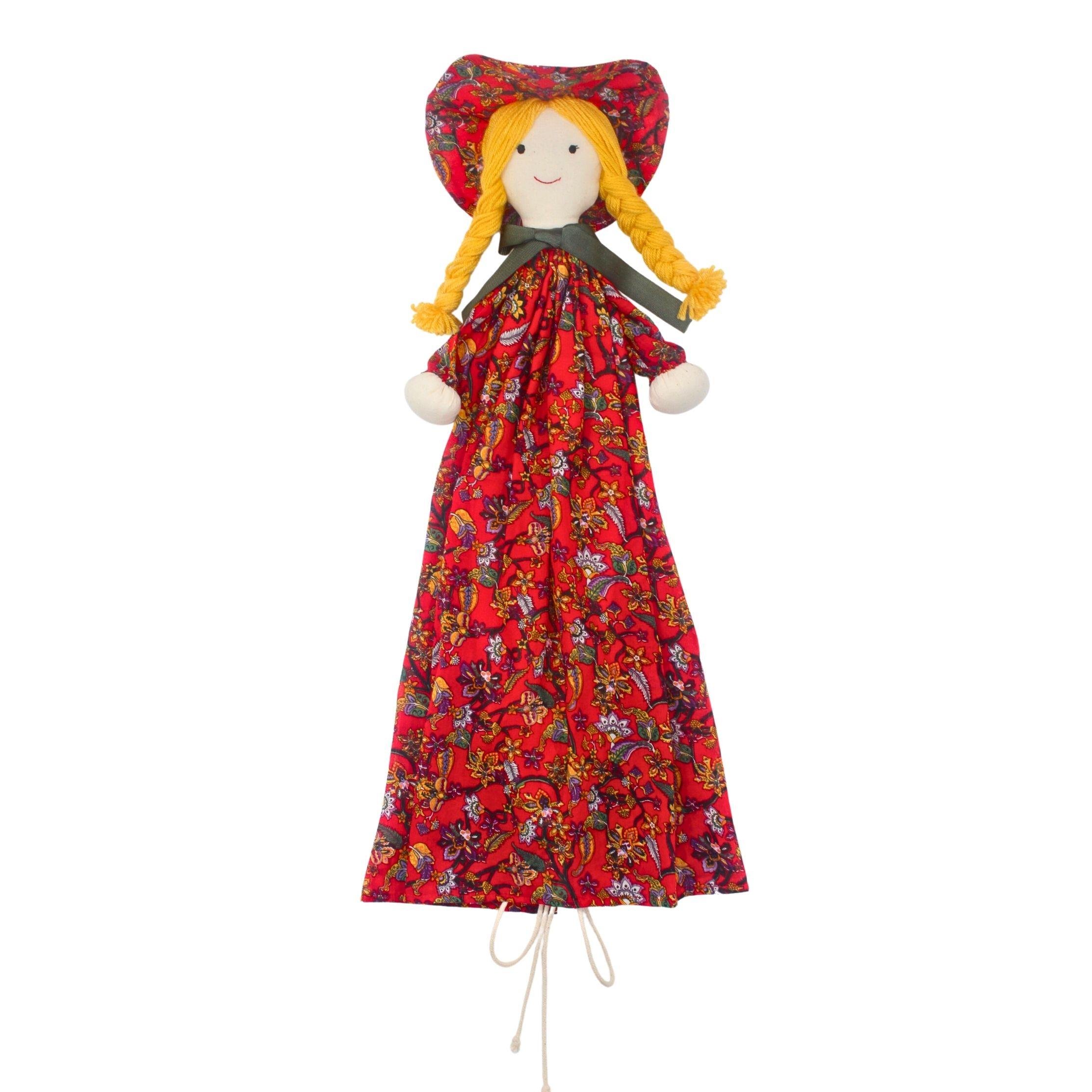 Kırmızı renkli bebek poşetlik pamuklu kumaştan yapılmıştır.