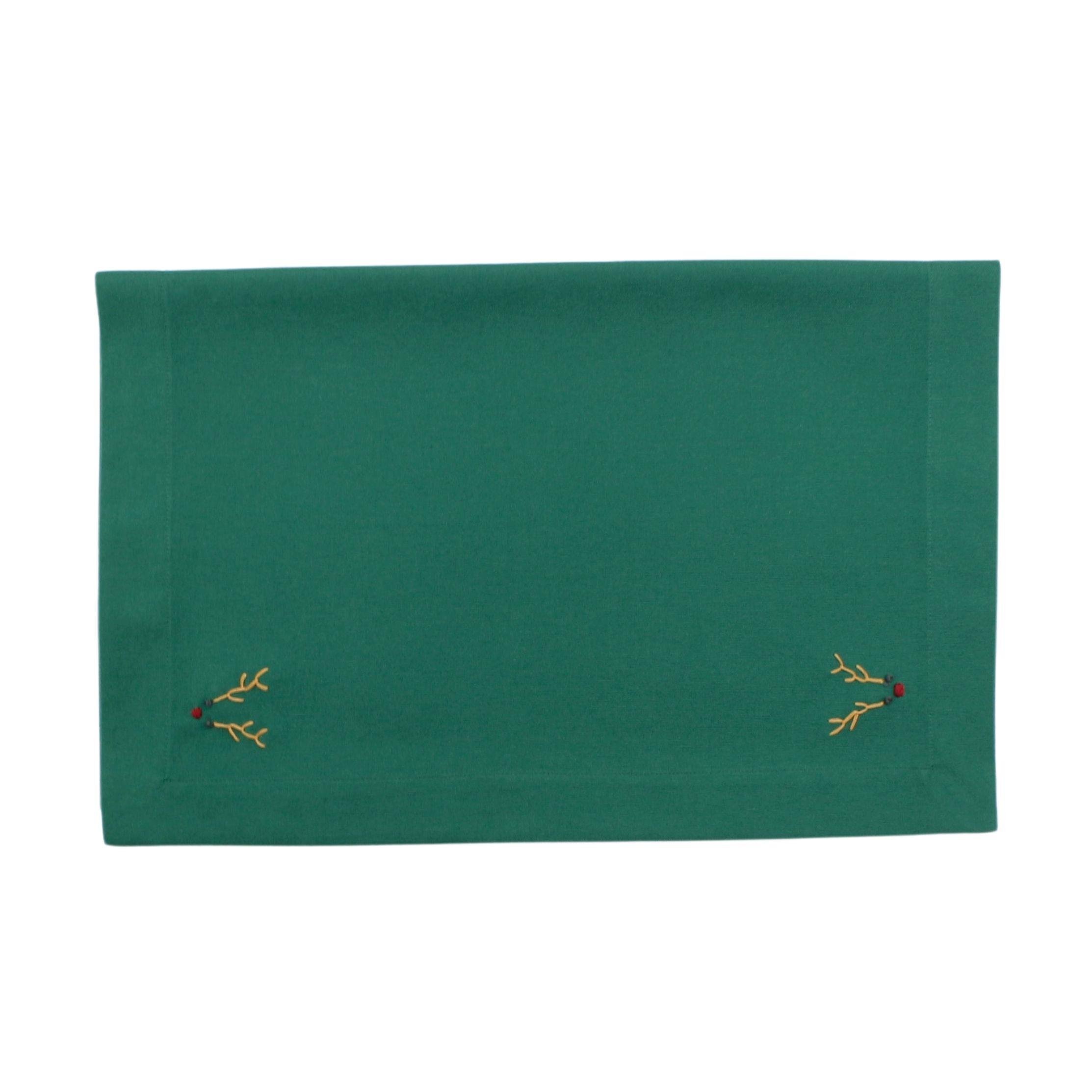 Yeşil renkli pamuklu kumaş üzerine geyik deseni işlenmiştir.