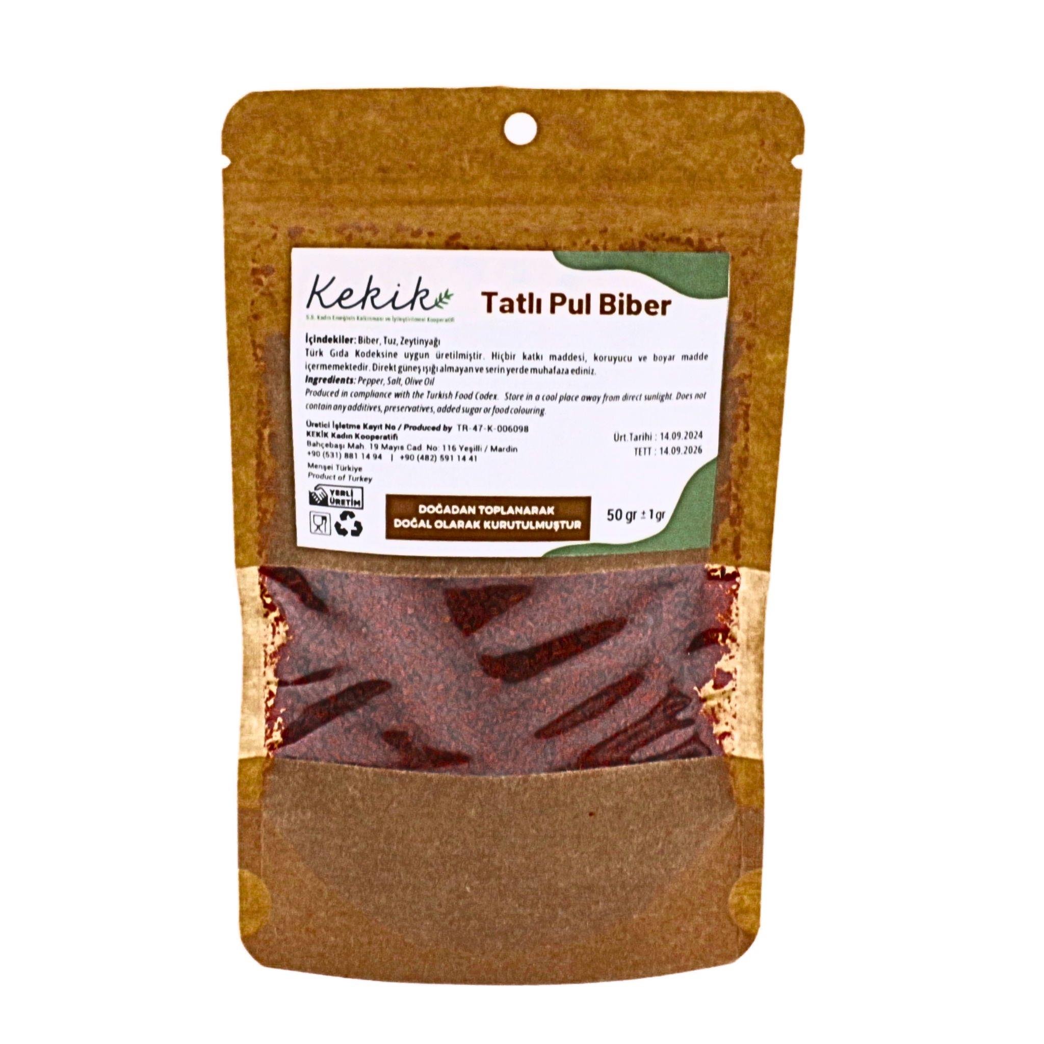 Kekik Kooperatifi’nin doğal yöntemlerle ürettiği tatlı pul biber, katkısız ve doğal içeriğiyle yemeklerinize lezzet katıyor.