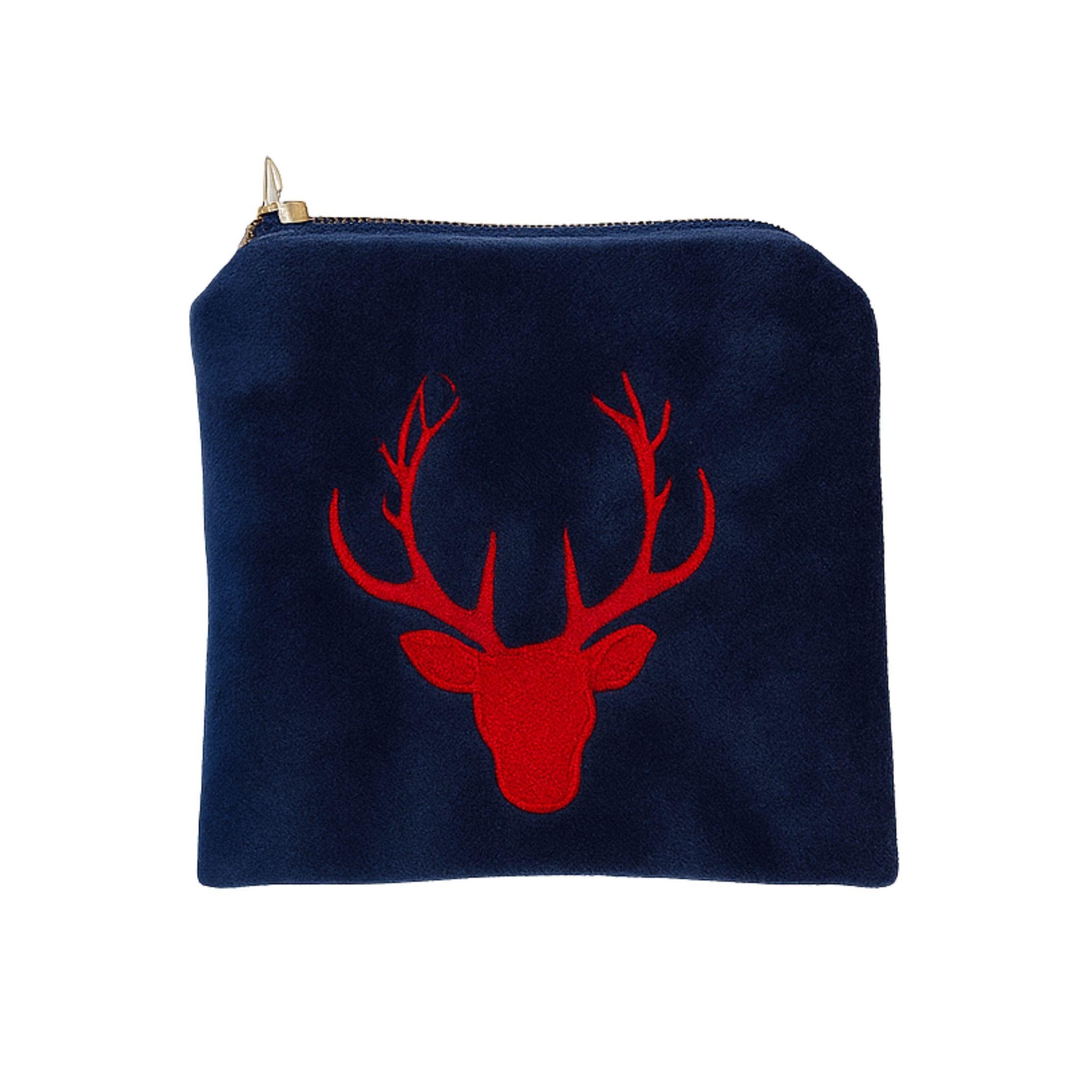 Geyik Nakışlı Lacivert Kadife Cüzdan (001001.003201)