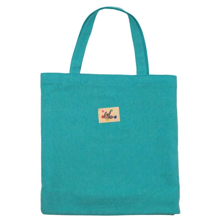 Turkuaz renkli bez çanta pamuklu kumaştan üretilmiştir.