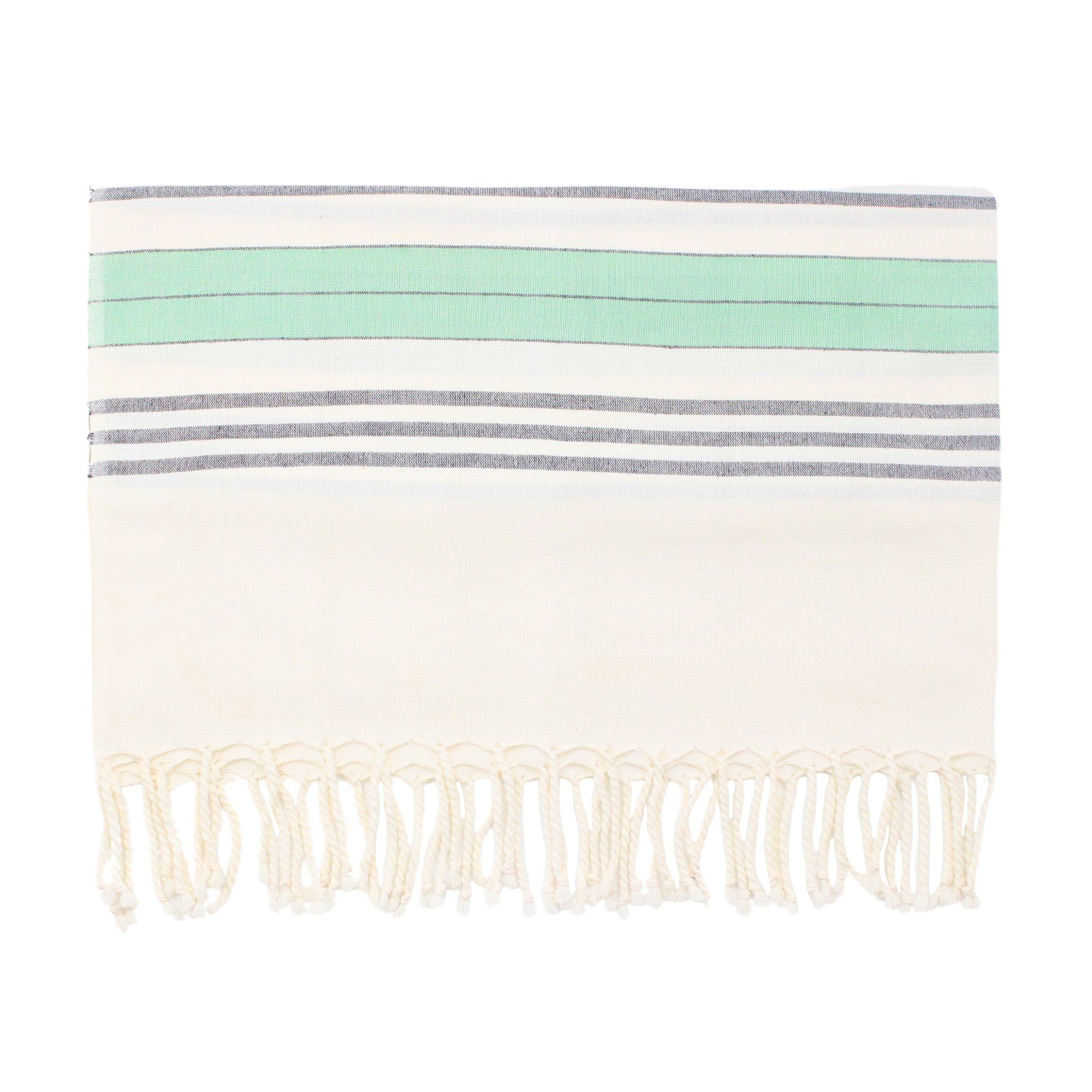 Yeşil çizgili dokuma peştemal %100 pamuklu kumaş ile üretilmiştir.